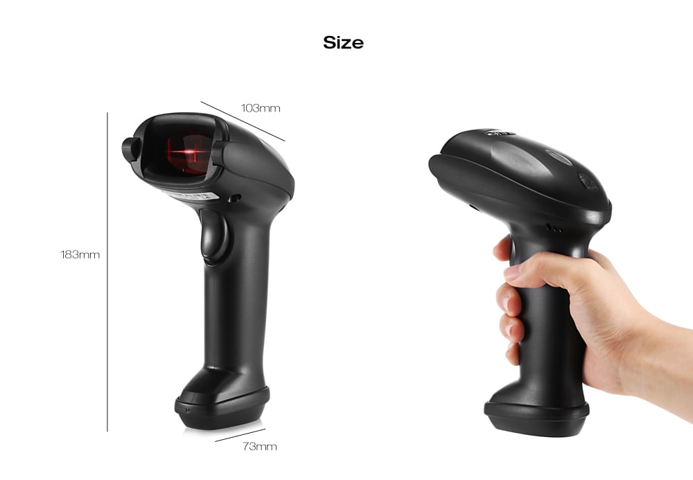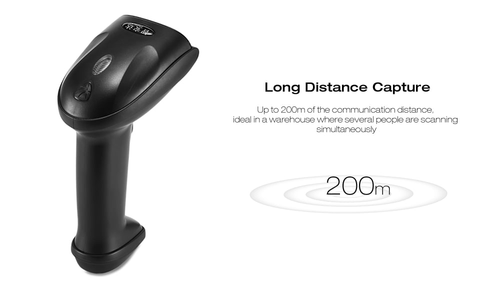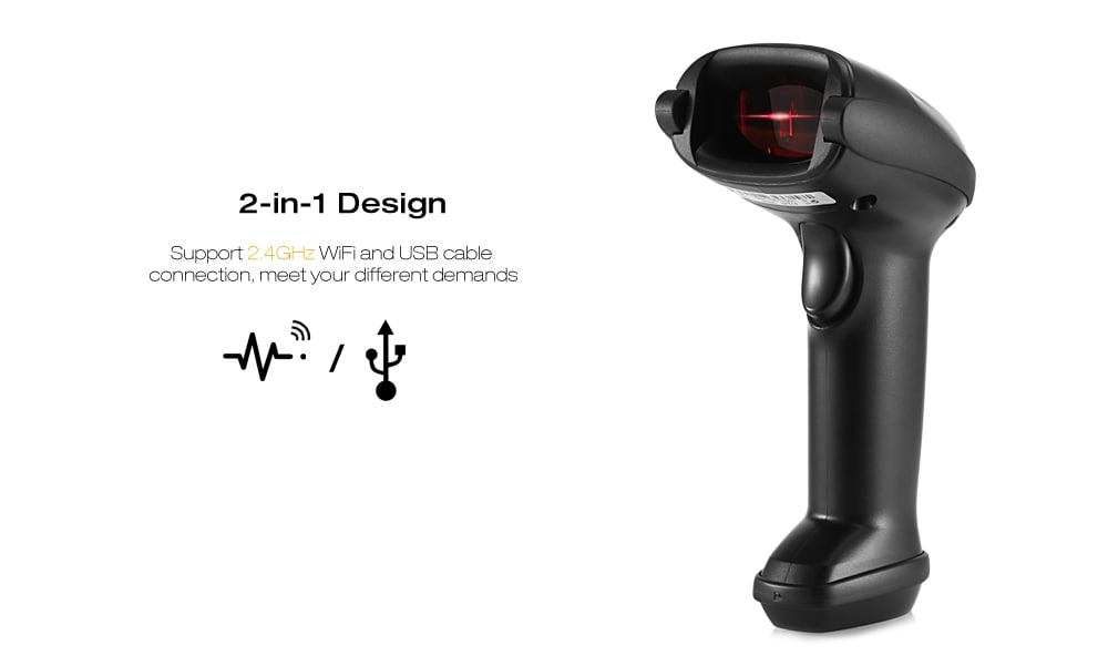 - With two ways of connection, USB cable connection and 2.4GHz wireless connection, up to 200m of the communication distance in the open place, ideal in a warehouse where several people are scanning simultaneously, choose the most convenient one for you to use