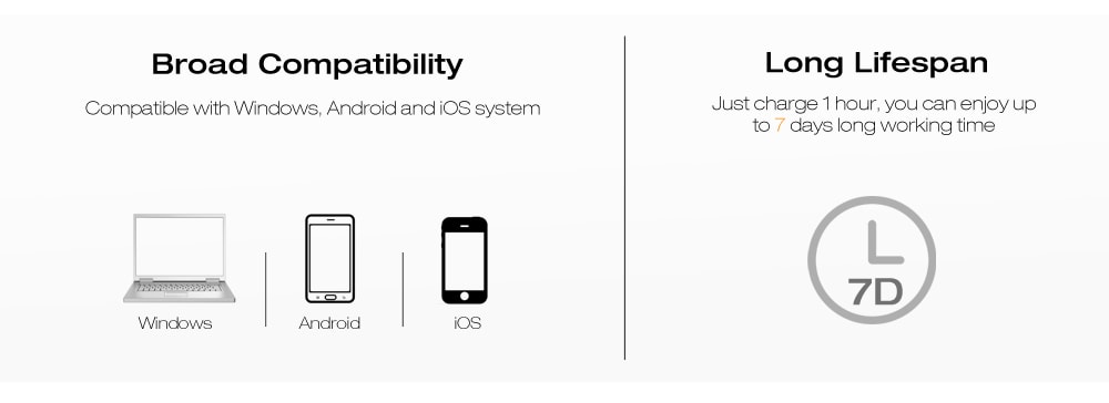 - Operating systems: compatible with iOS 10.2.1, Win 7 / 8 / 10, Android 7.0, etc.