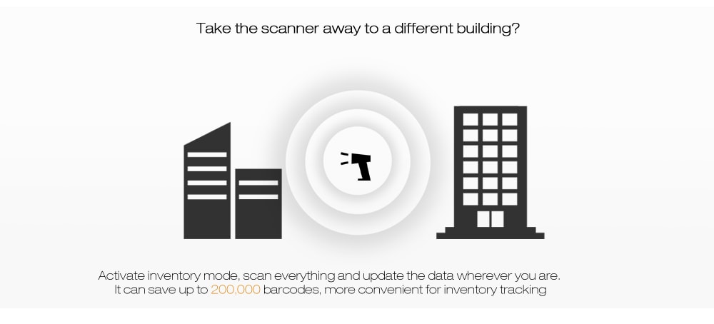 - Can store 20,000 barcodes, reading without a connection, is convenient for inventory tracking