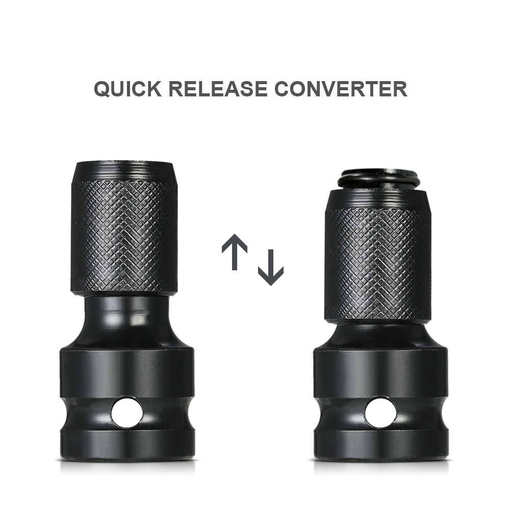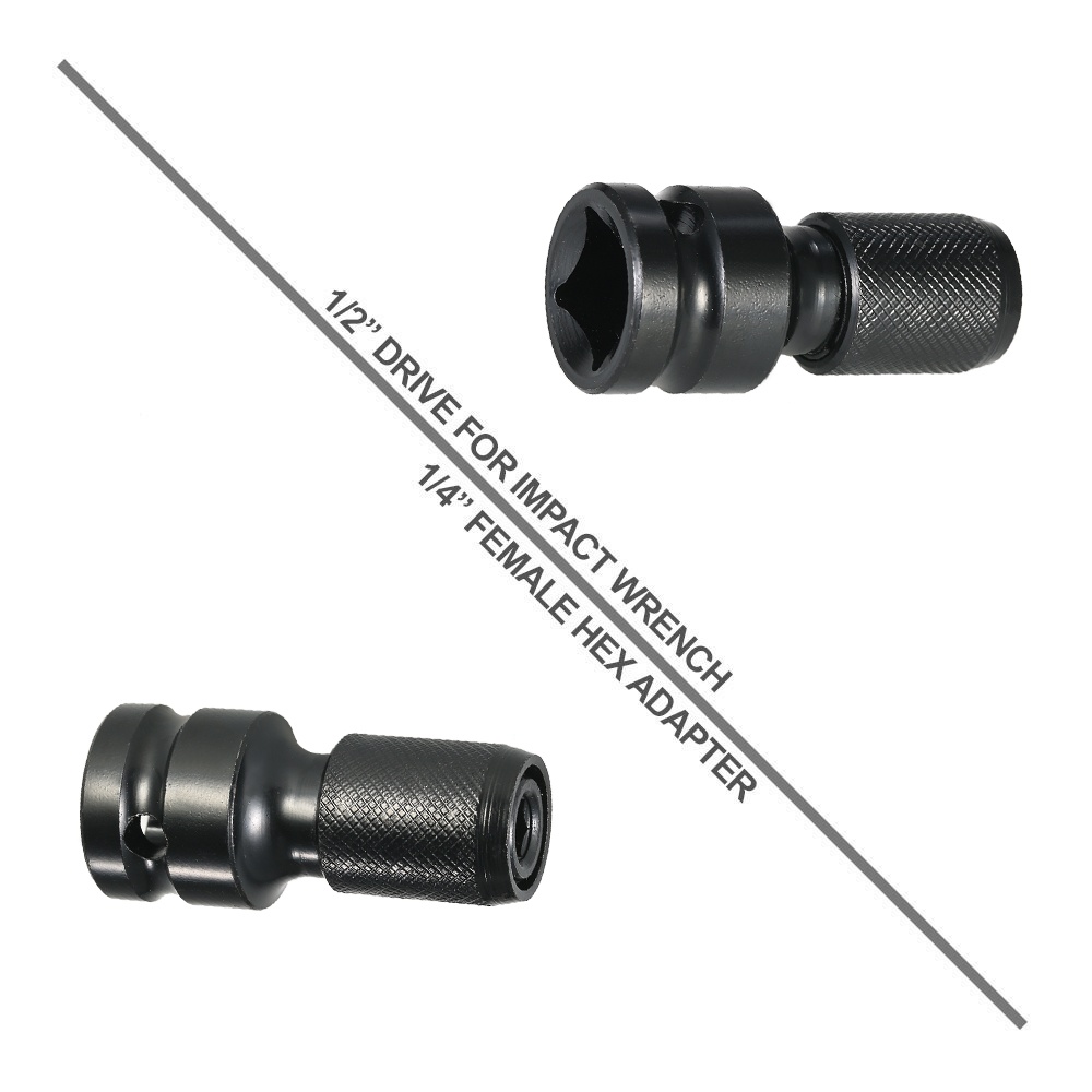1/2" Square to 1/4" Hex Shank Socket Adapter Quick Release Chuck Converter for Impact and Ratchet Wrench