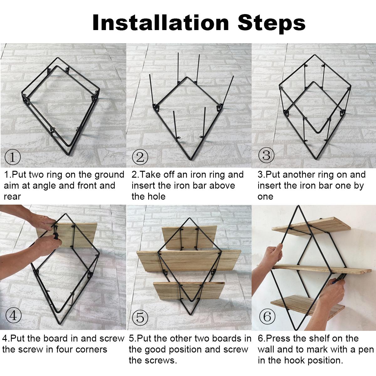 Specifications of New Retro Industrial Style Rhombus Wood Metal Wall Shelf Rack Storage Home Decor